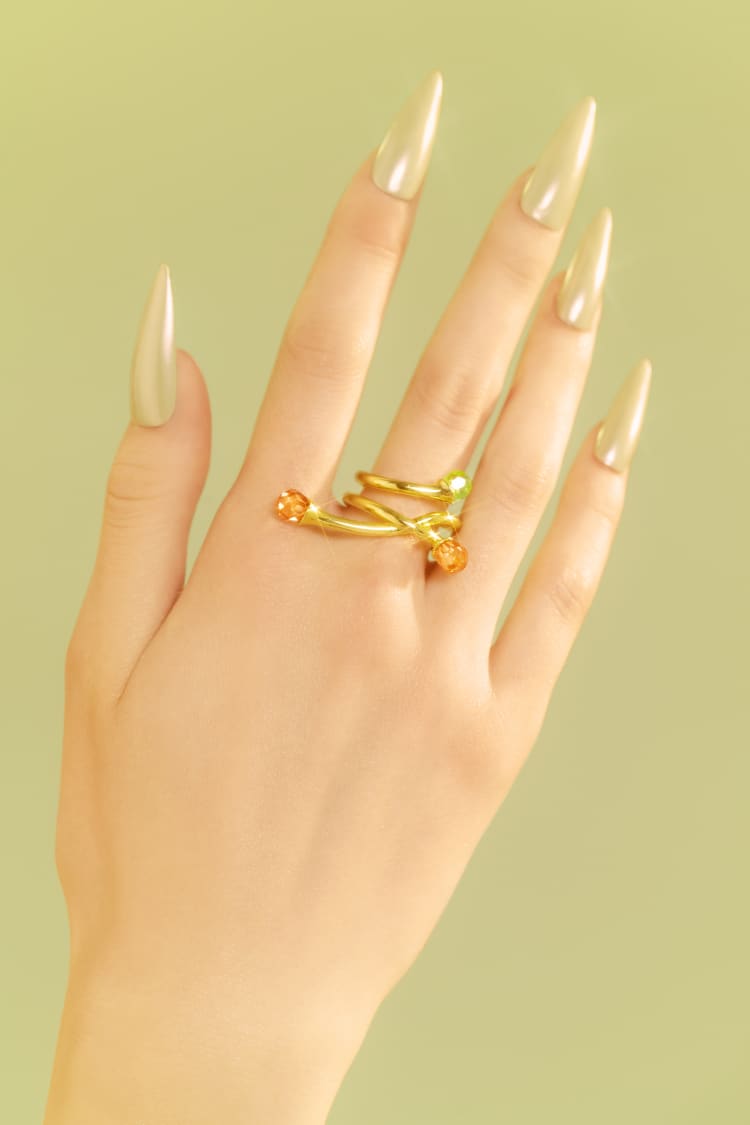 Jewellery that flows and moves like the roots of the earth adorned with crystal stones in earthy browns and vibrant greens that reflect the wild beauty of the forest. Let these bold, nature-inspired pieces become a part of you, integrating seamlessly with your style.