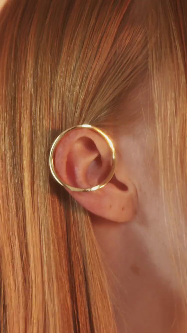 Scopri l’elegante ear cuff circolare in oro 18k: design minimalista, nessun foro necessario, comfort e luce dorata per valorizzare ogni look con stile.