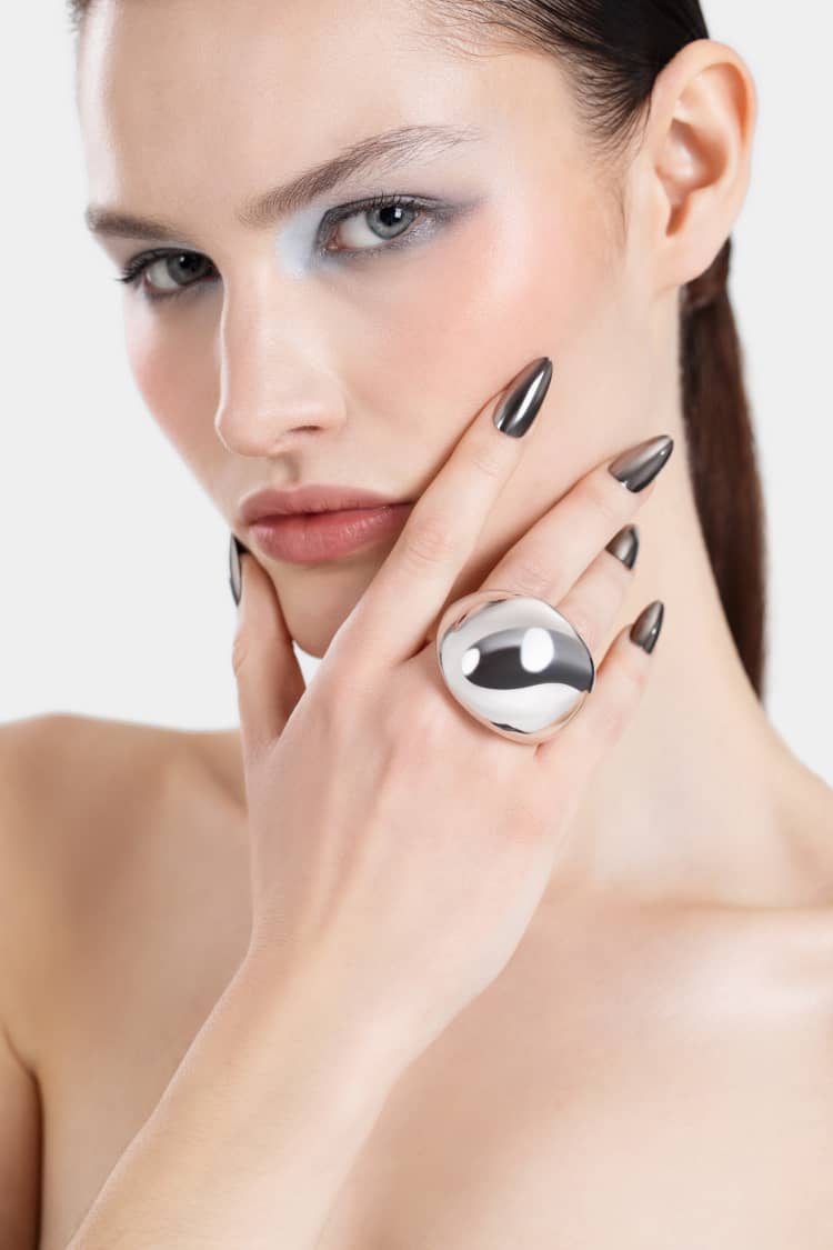 Anello scultoreo a doppio dito in argento